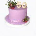 Нежно фиолетовый торт женщине на 50 лет с малиной