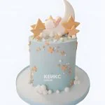 Нежно голубой торт на выписку с полумесяцем и фигуркой