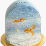 Нежно-голубой торт с золотыми рыбками