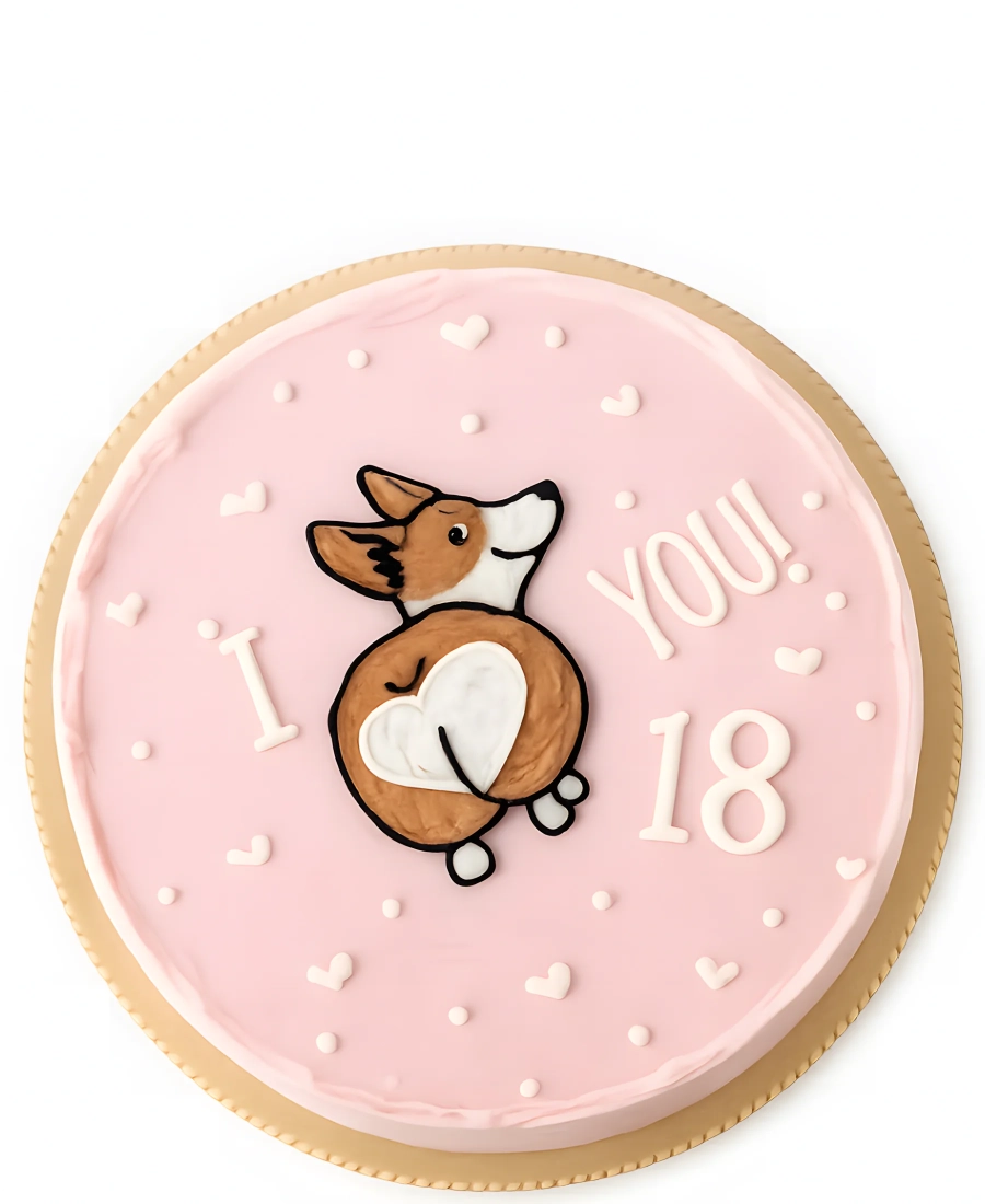 Нежно-розовый бенто-торт на 18 лет с корги