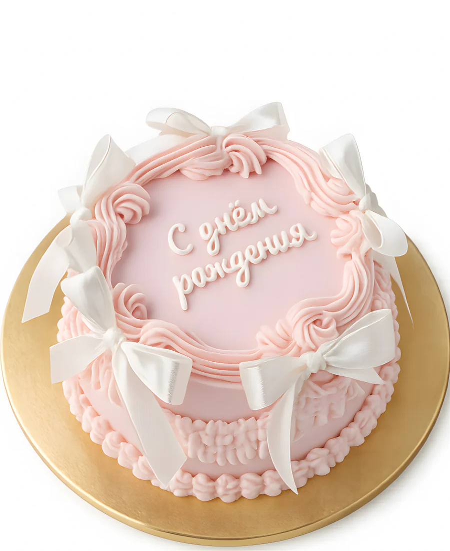 Нежно-розовый бенто торт с бантиками