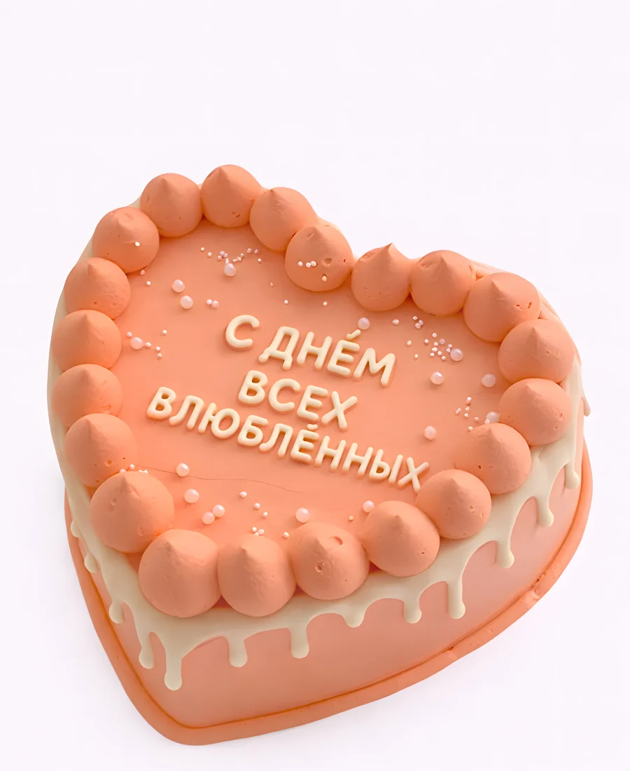 Нежно-розовый милый торт на 14 февраля