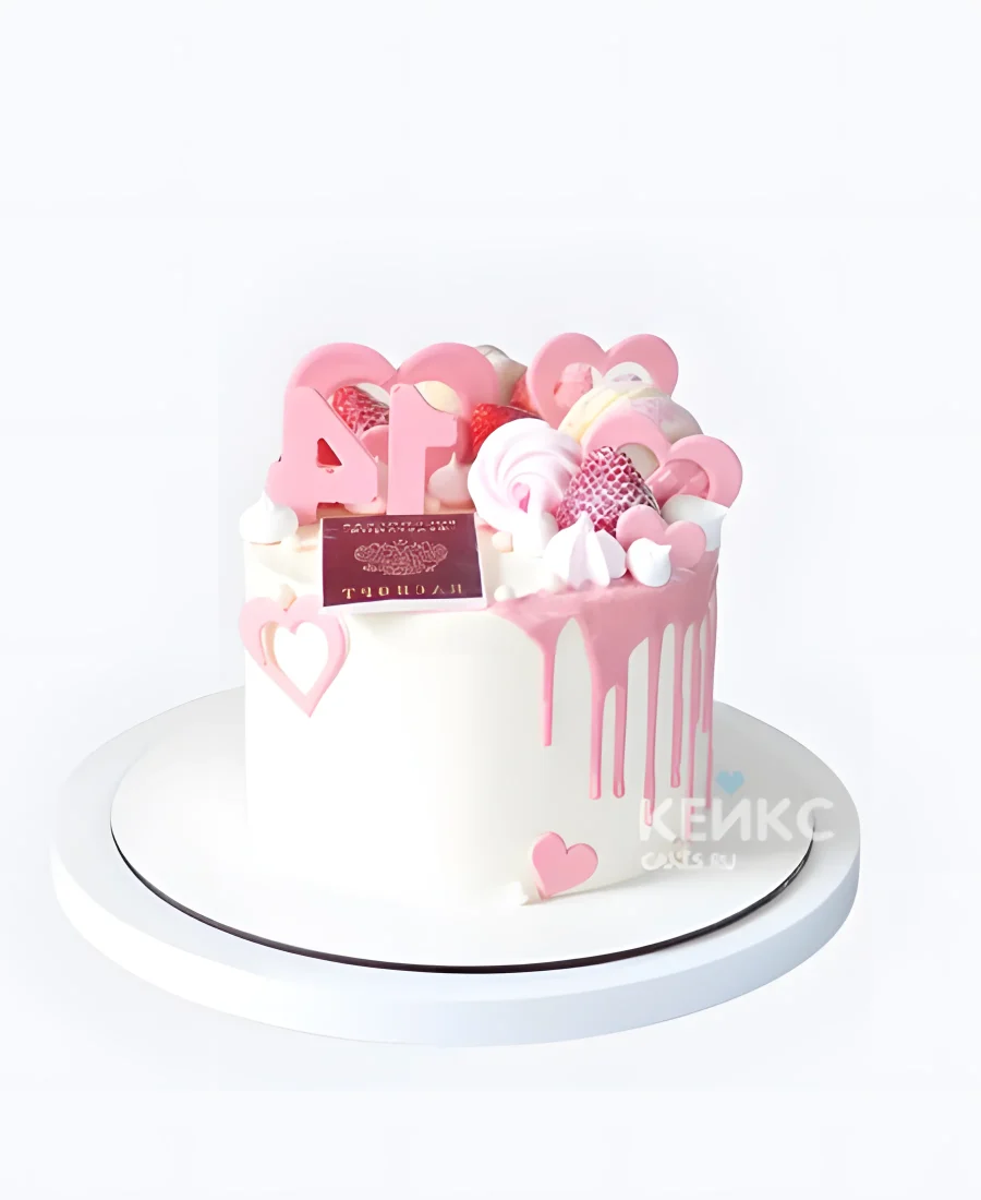 Нежно-розовый торт на 14 лет с ягодами и паспортом