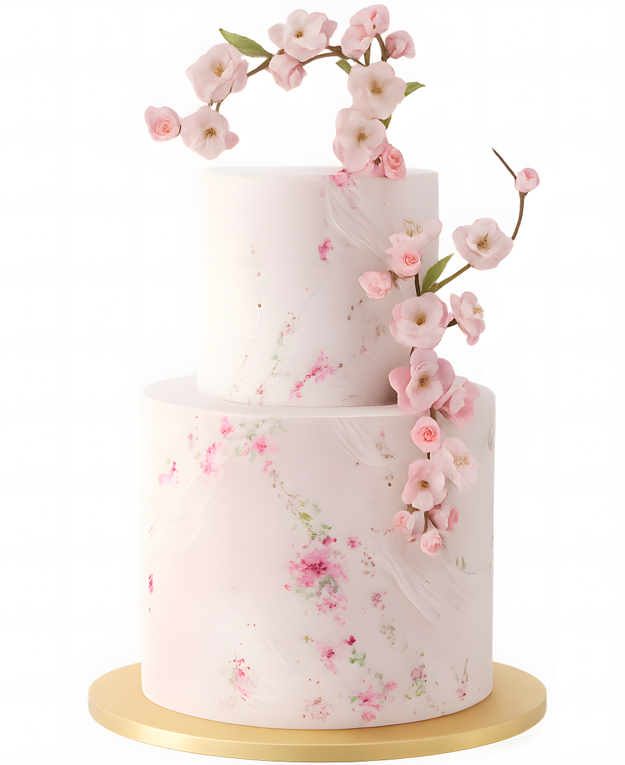 Нежно-розовый торт с орхидеями