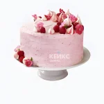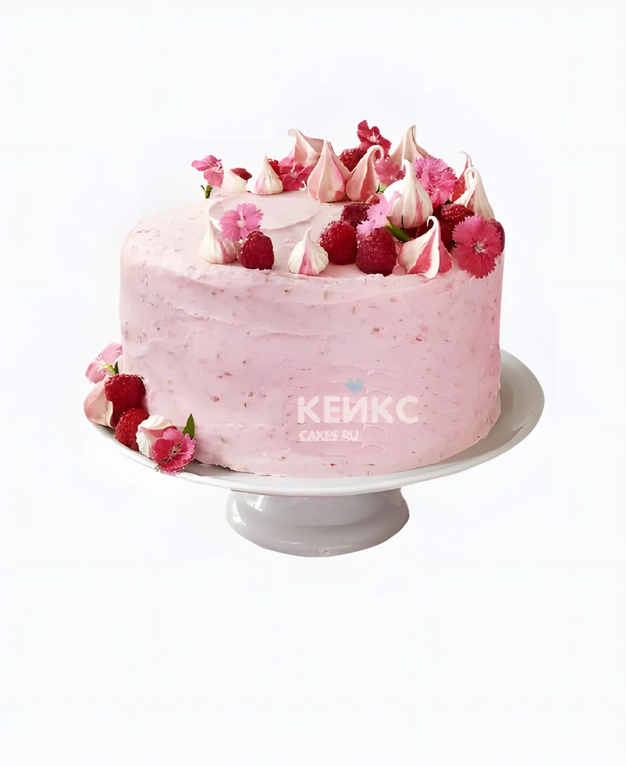 Нежно-розовый торт с малиной и цветами