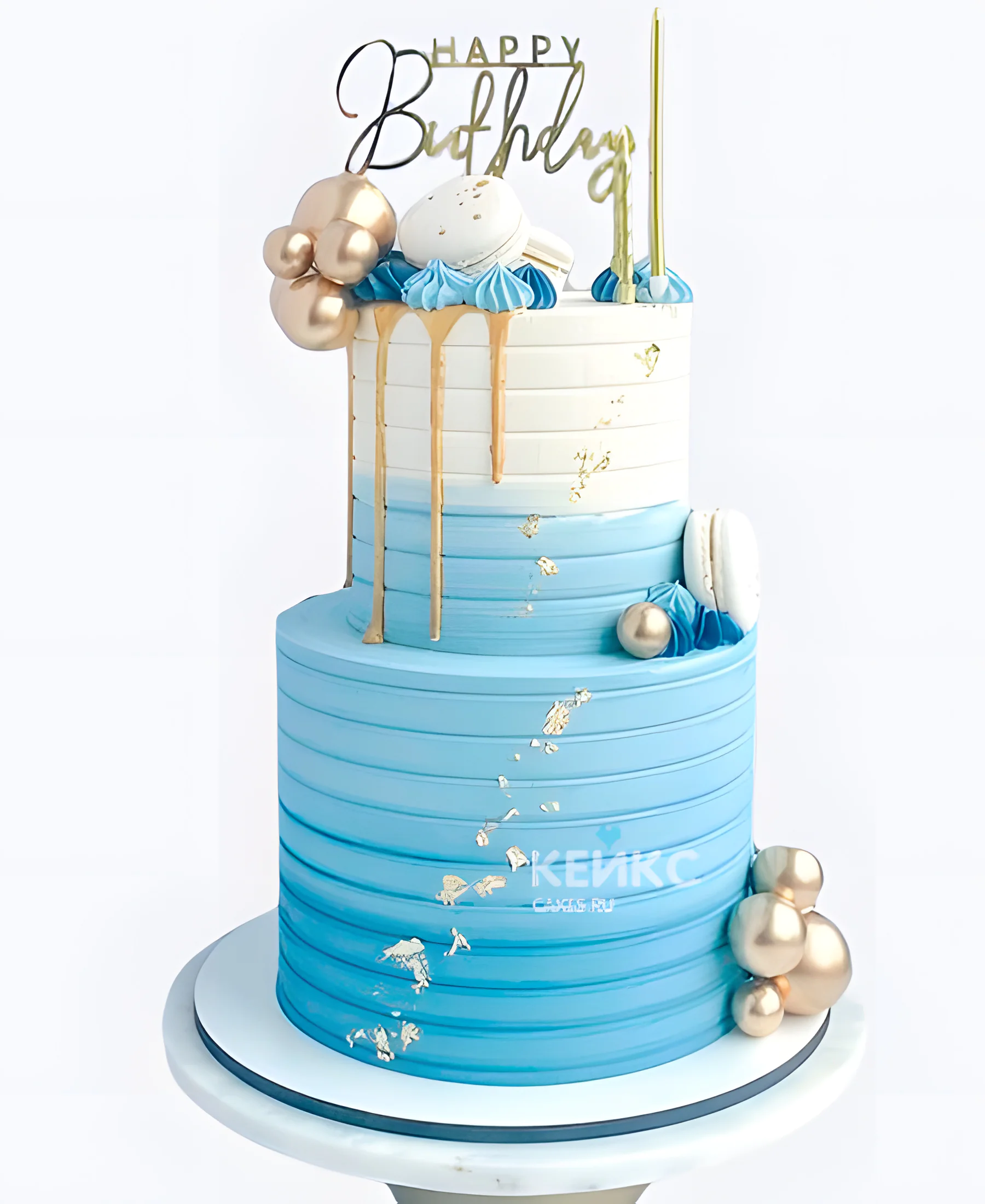 Нежный двухъярусный торт на день рождения с макаруни