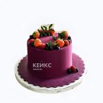 Фиолетовый торт с бархатистой велюровой текстурой выглядит по-королевски роскошно. Насыщенный оттенок напоминает лепестки лаванды или вечернее небо. Поверхность украшена сочными ягодами, которые создают яркий контраст с нежным покрытием. Круглая форма придает торту элегантность, а минималистичный декор подчеркивает изысканность. Этот торт словно сошел со страниц сказки – загадочный, волшебный и невероятно красивый.