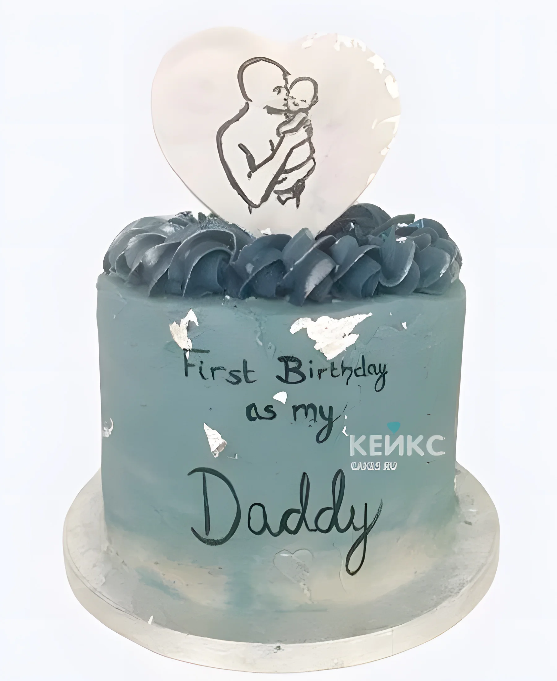 Нежный голубой торт на юбилей мужу с малышом