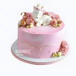Нежный розовый торт девочке на 12 лет с розами и олененком