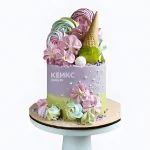 Нежный торт девочке на 14 лет с зефиром и рожком мороженого
