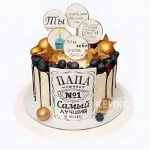 Нежный торт мужчине на 50 лет с надписями и ягодами