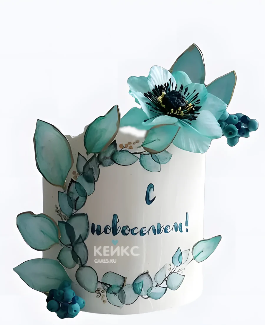 Нежный торт на новоселье с зелеными цветами
