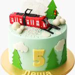 Нежный торт с фигуркой трамвая