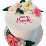 Нежный торт с розовыми цветами на сватовство