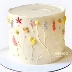 Солнечный желтый торт словно излучает тепло и радость. Нежные кремовые розочки и мелкие цветочки создают трогательную композицию, напоминающую о летнем луге. Пастельные оттенки и плавные линии дарят ощущение легкости и нежности. Каждый элемент декора выполнен с удивительной аккуратностью и любовью.