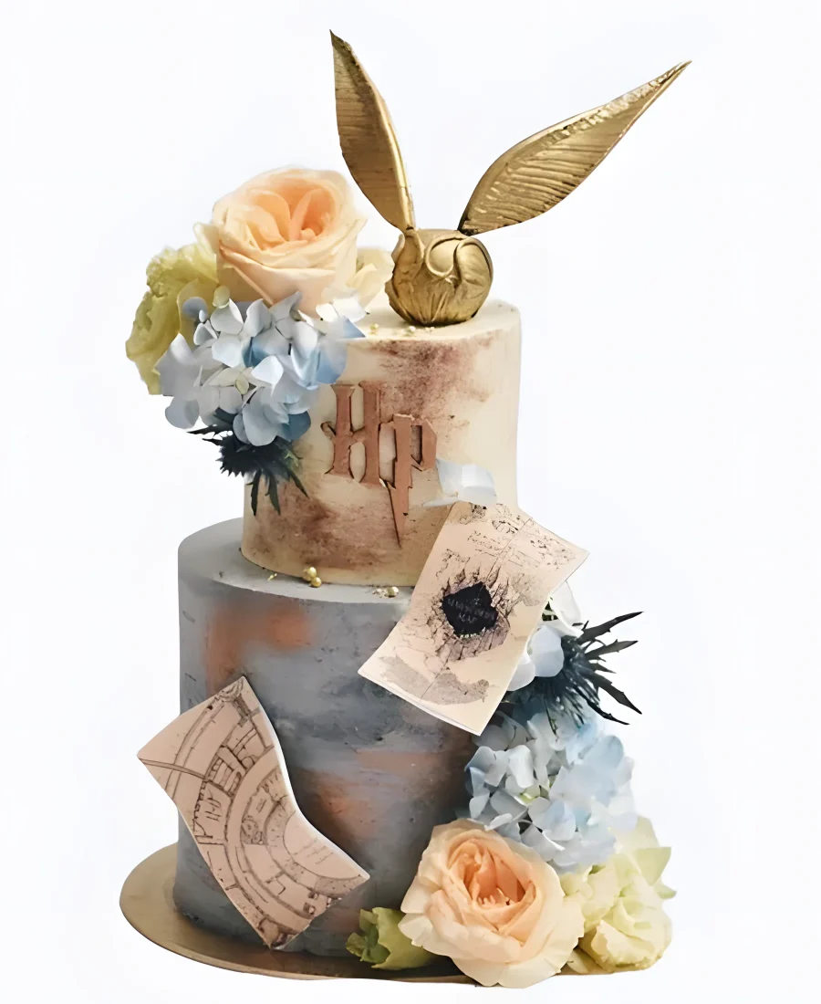 Нежный тортик на день рождения с цветами по Гарри Поттеру