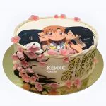 Белый торт с сакурой в стиле аниме Мастера меча онлайн