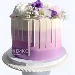 Очаровательный фиолетовый торт с цветами и подтеками