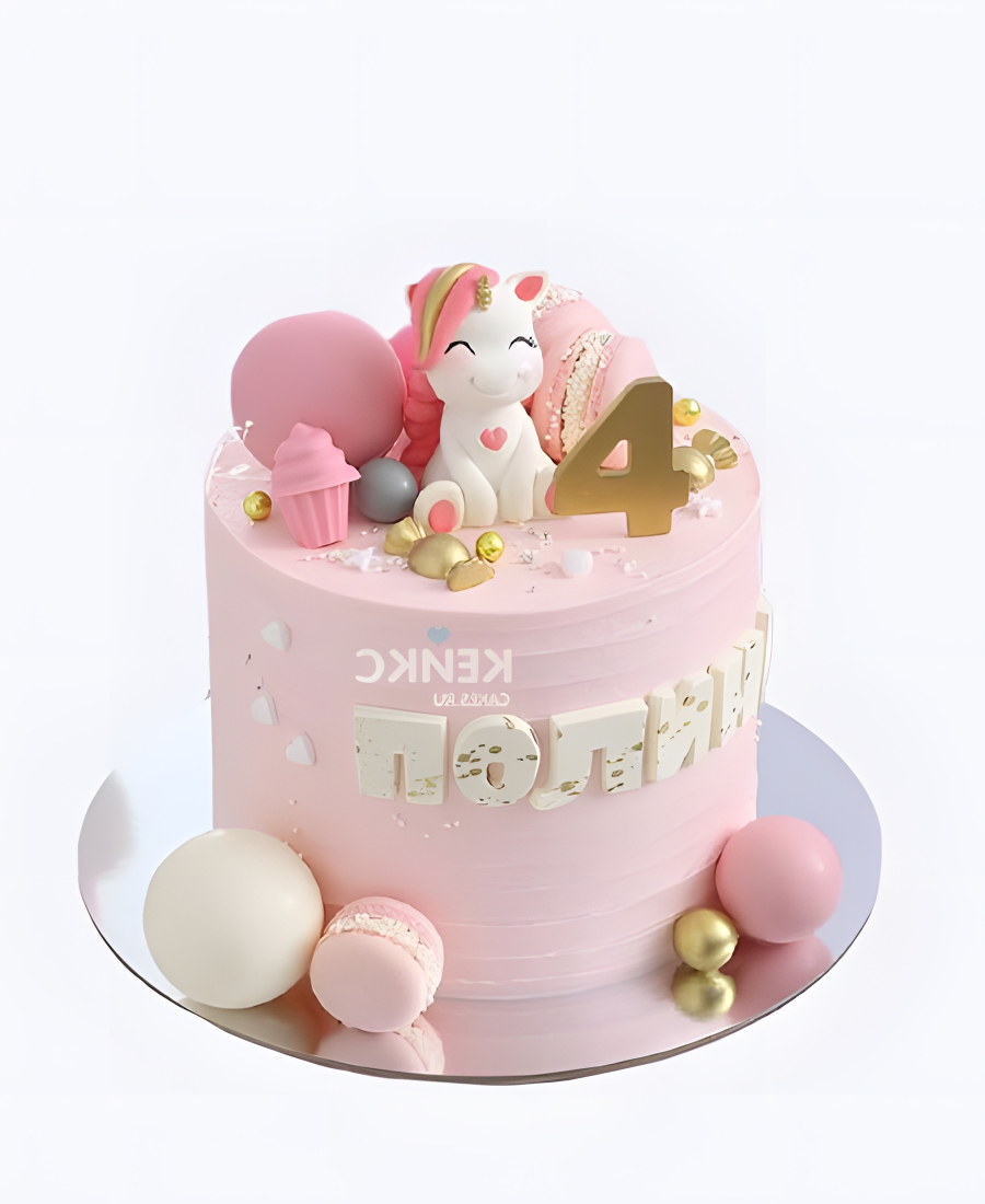 Очаровательный торт на 4 года с единорожкой и макарунс