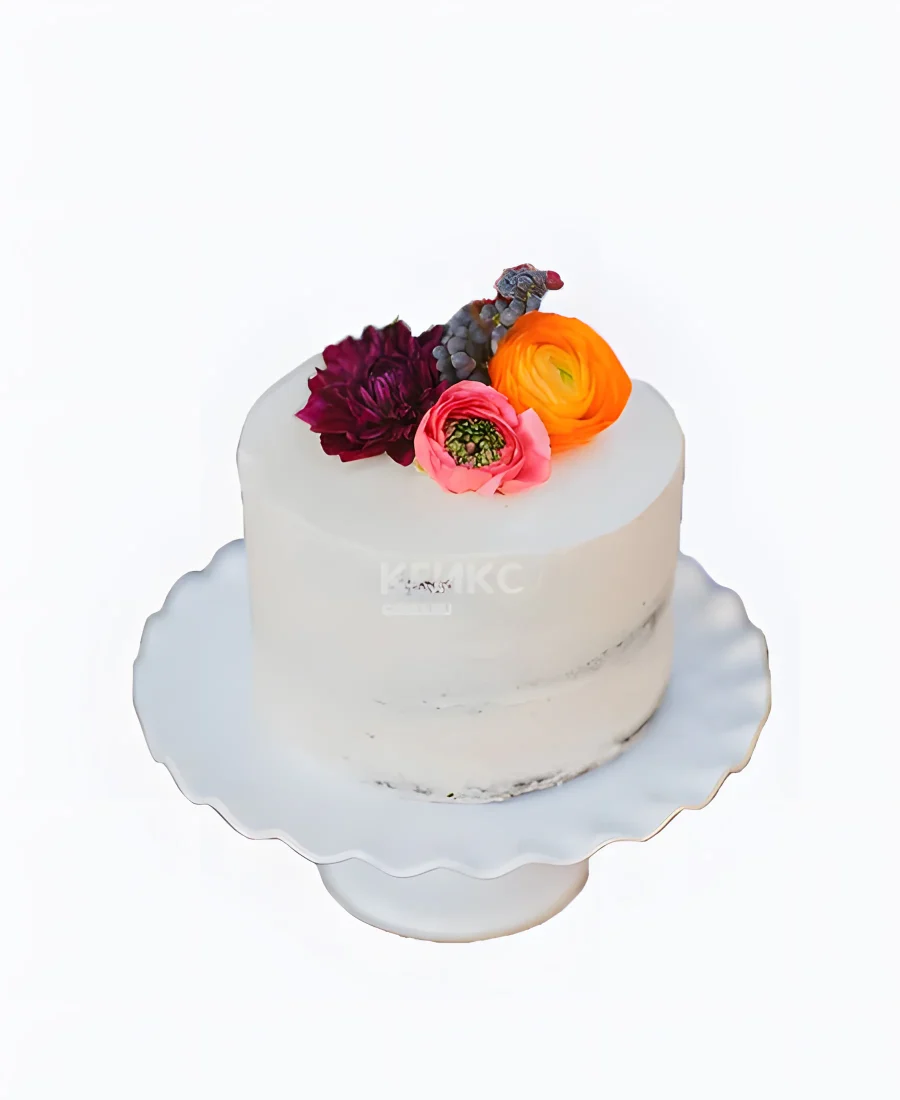 Одноярусный свадебный торт без мастики роза, пион, как, виноград