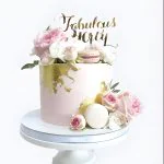 Одноярусный свадебный торт с поталью, розой, и макаруни
