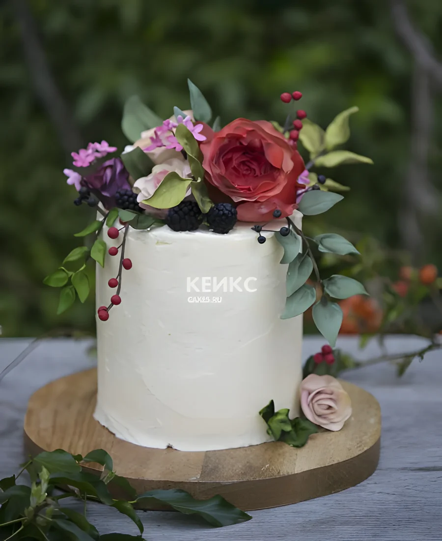 Одноярусный свадебный торт без мастики, разнообразие цветов и красок