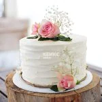 Одноярусный свадебный торт без мастики с розами и гипсофилой