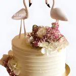 Одноярусный свадебный торт рифленый с фламинго и цветами