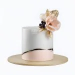 Одноярусный свадебный торт серебристый с розой и золотыми лепестками