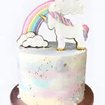 Пастельный бенто торт девочке на 7 лет с радугой и единорогом
