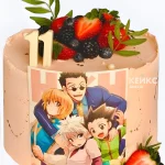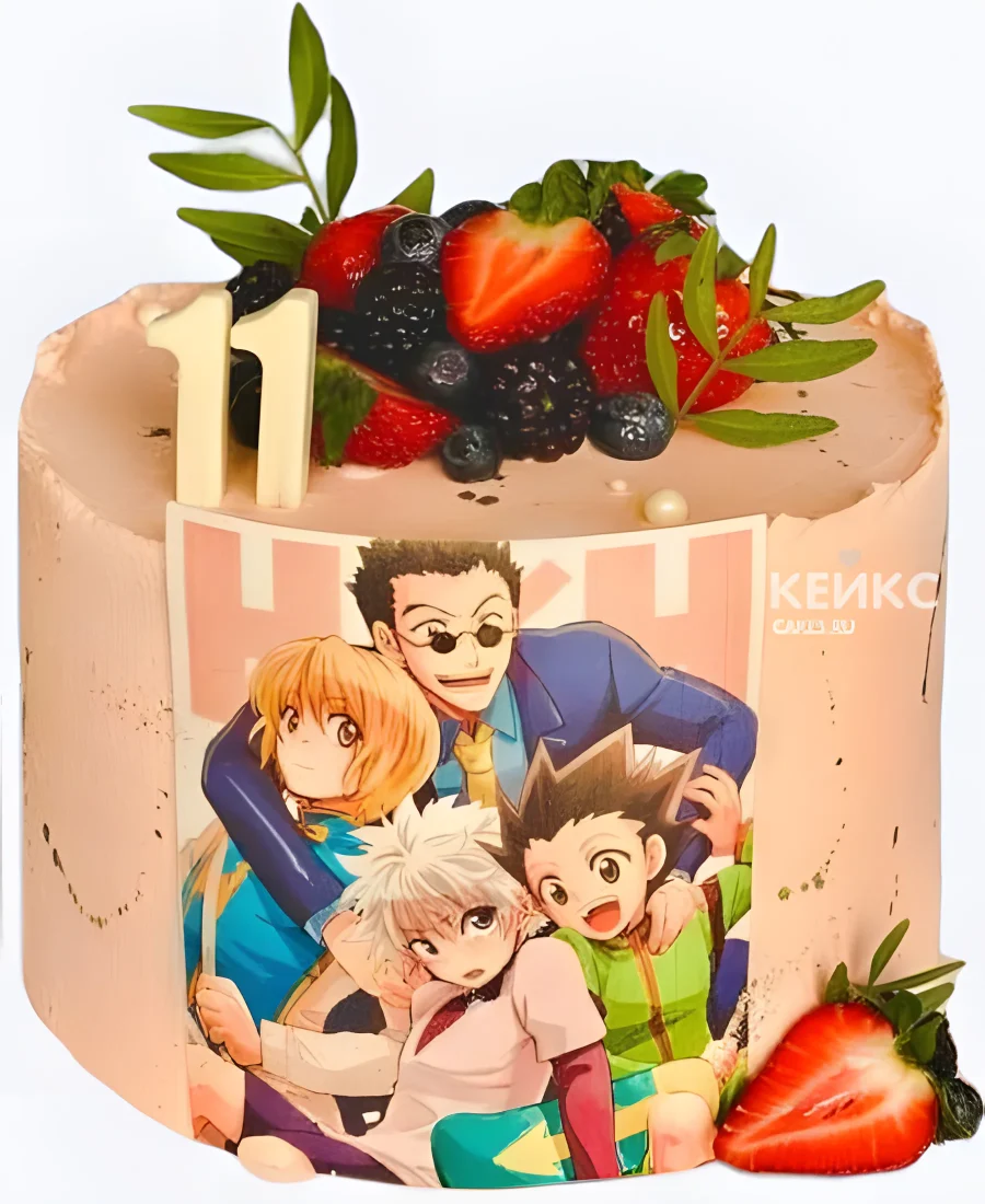 Персиковый торт с ягодами на день рождения аниме Хантер х Хантер
