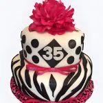 Пестрый двухъярусный торт из мастики на 35 лет