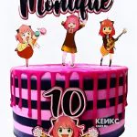 Яркий и стильный торт с динамичным дизайном в духе популярного аниме. Чередующиеся полосы насыщенного розового и глубокого синего создают эффект движения. Фотопечать с любимыми персонажами и аппликации добавляют игривости и праздничного настроения. Сочетание цветов и графики вызывает восторг и переносит в захватывающий мир шпионских приключений.