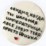 Этот торт — настоящая шутка в кондитерском исполнении! Чистый белый фон создает эффект минимализма, а контрастная черная надпись сразу притягивает взгляд. Простота исполнения делает его стильным и современным, а легкая небрежность в оформлении добавляет нотку иронии. Такой торт — как забавная открытка, только съедобная. Он точно вызовет улыбку и станет центром внимания на любом празднике.