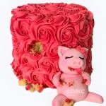 Этот яркий круглый торт создан для веселого юбилея! На белоснежном креме красуется забавная розовая хрюшка с озорной улыбкой. Вокруг нее рассыпаны нежные кремовые цветы, а золотые блестки добавляют торжественности. Сочетание розового, белого и золотого создает праздничное настроение. Хрюшка с бантиком и задорным взглядом сразу привлекает внимание и вызывает улыбку. Простой, но выразительный декор делает торт запоминающимся и душевным.