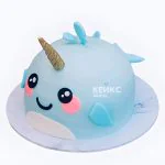 Прикольный торт на юбилей в виде нарвала с золотым рогом