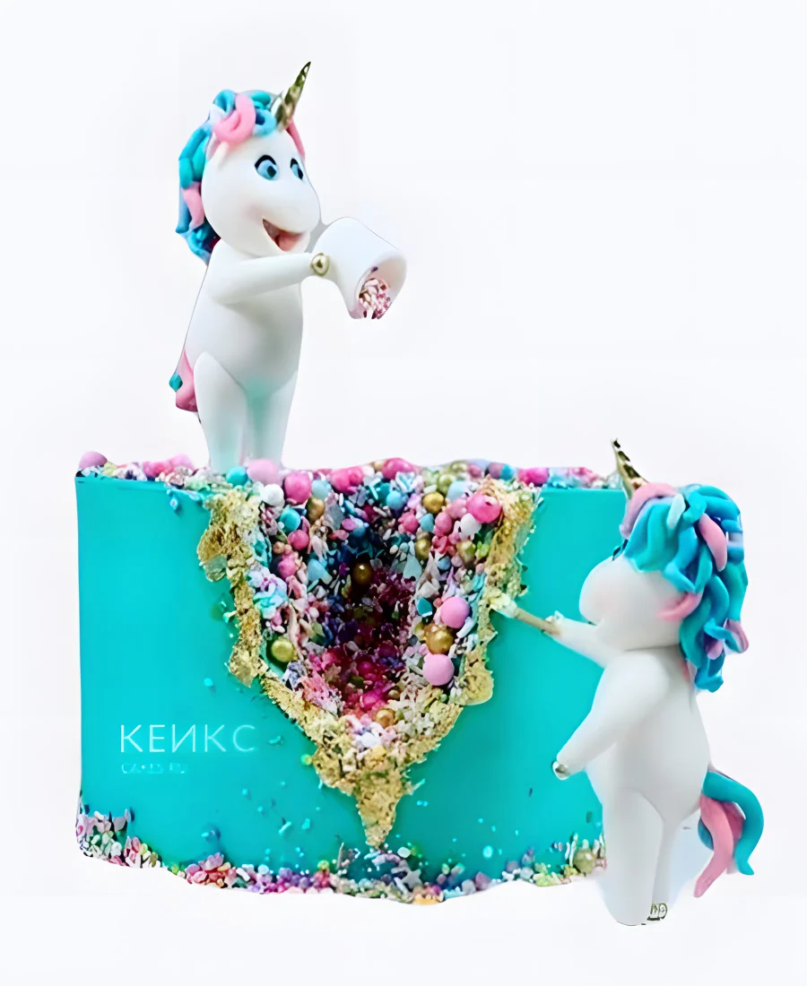 Прикольный торт с единорогами на юбилей