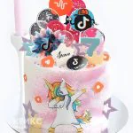 Удивите своих друзей и членов семьи этим тортом с логотипом ТикТок и розовой глазурью! Дополнительно он украшен подтеками и фигуркой наушников.
