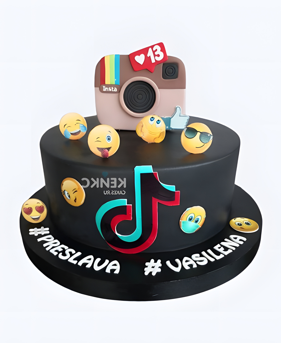 Прикольный торт с инстаграм и эмодзи
