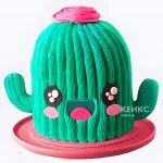 Яркий и необычный торт в форме кактуса сразу привлекает внимание. Сочно-зелёная мастика с игольчатым узором создаёт иллюзию настоящего растения. Весёлые цветные цветы и улыбающаяся мордочка на кактусе добавляют торту игривости и праздничного настроения. Ярко-розовые и фиолетовые акценты гармонично дополняют зелёную основу, делая торт по-настоящему запоминающимся.