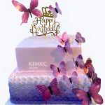 Прямоугольный двухъярусный торт на юбилей с бабочками