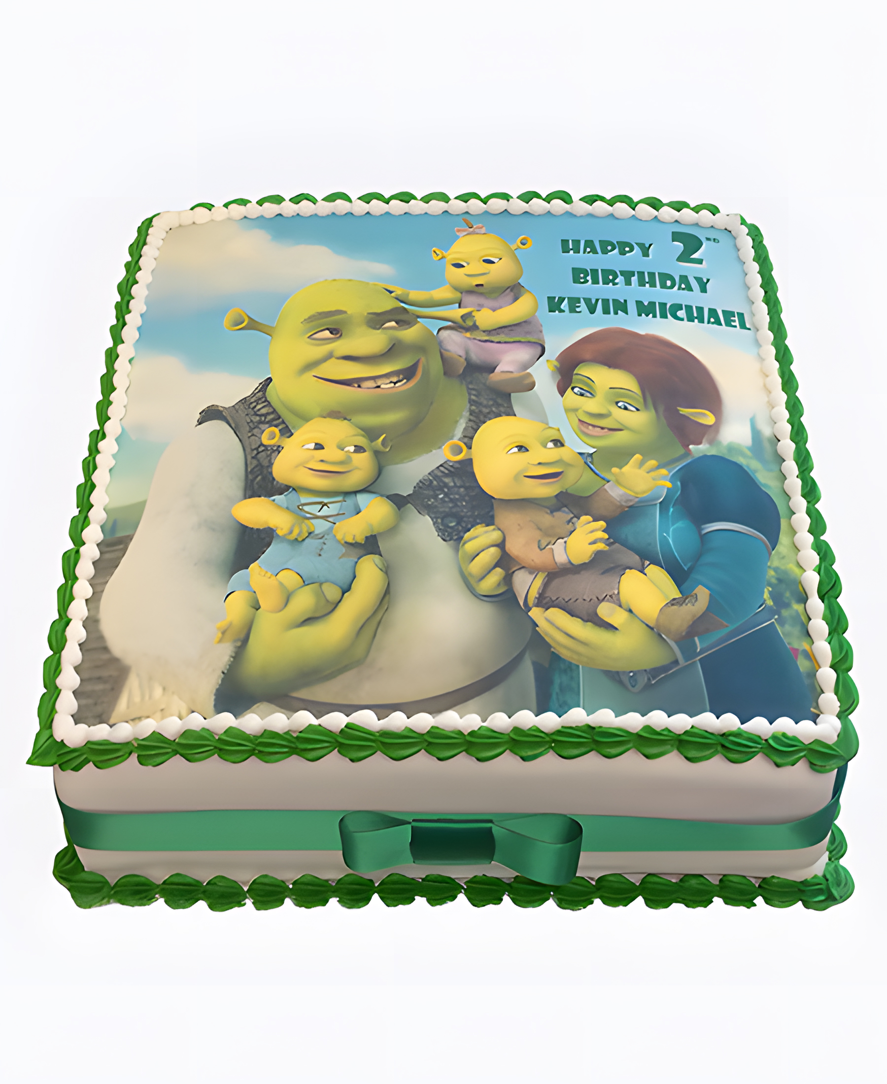 Прямоугольный торт с фотопечатью из мультфильма Шрек