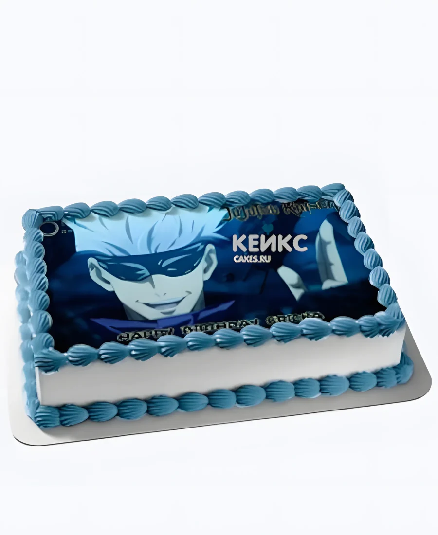Прямоугольный торт с голубым кремом аниме Магическая битва