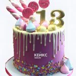Пурпурный торт на 13 лет с цифрой
