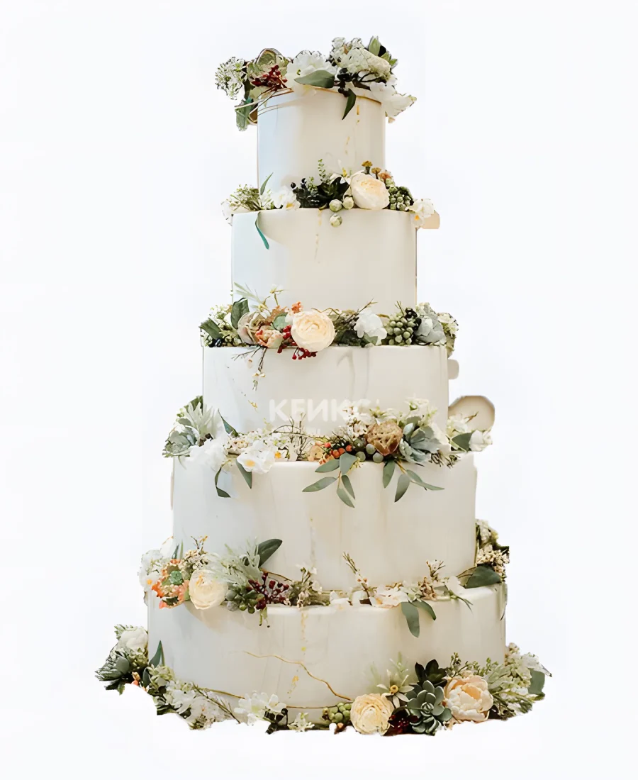 Необычный свадебный торт 5-ярусный в стиле рустик