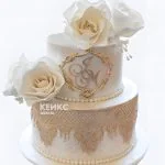 Нежный двухъярусный торт в пастельных тонах создает атмосферу утонченной свадебной элегантности. Фактурная льняная текстура покрытия гармонично сочетается с воздушными цветочными композициями из мастики. Три яруса украшены изящными лепестками и бутонами, переливающимися перламутровыми оттенками. Цветочные гирлянды мягко ниспадают по ярусам, добавляя торжественности и романтики. Сдержанная цветовая гамма и плавные линии создают ощущение гармонии и невесомости.