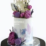 Пышный торт женщине на 50 лет с розами и макарон