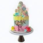 Радужный торт девочке на 14 лет с леденцами и фотопечатью