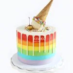Разноцветный торт девочке на 12 лет с рожком мороженого