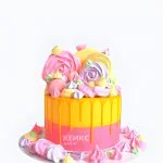Разноцветный торт девочке на 14 лет с безе и макарунсами